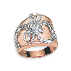 auffälliger Herrenring, Rot-/Weißgold 585, Zirkonia, Gewicht ca. 15,2 gr.