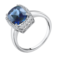 Damenring, Silber 925, mit London Blue Topas und Zirkonia, zentrales Schmuckelement ca. 10x8 mm