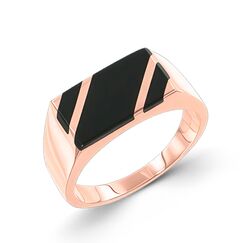 kostbarer Herrenring, Rotgold 585, Zirkonia, Onix, Gewicht 6,15 Gramm