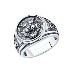 Runder Herrenring aus 925 Silber mit schwarzer Emaille, Größe 21 mm