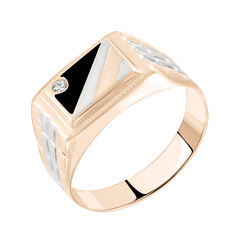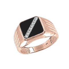 kostbarer Herrenring, Rotgold 585, Zirkonia, Onix, Gewicht 6,15 Gramm