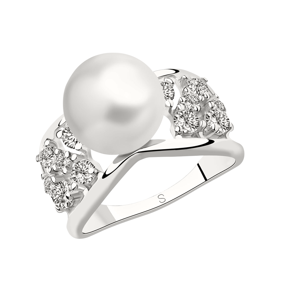 Damenring aus 925 Silber mit Perle und Zirkonia
