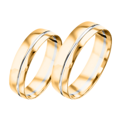 Trauring, Weiß-/Gelbgold 585, Oberfläche Hochglanz poliert, Breite 4,0 mm. / Preis für je 1 Ring